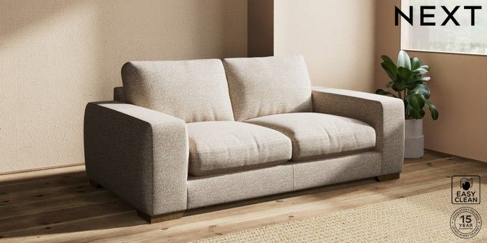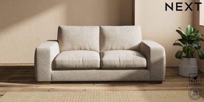 7.2.10 Houghton Deep Relaxed Sit 3 Seater Small Sofa Chunky Boucle Easy Clean Mid Natural Large Square Angle - Mid | Made Click here to use our website with more accessibility support, for example screen readers