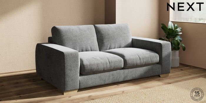 7.2.10 Houghton Deep Relaxed Sit 3 Seater Small Sofa Chunky Chenille Dark Grey Large Square Angle - Light | Made Click here to use our website with more accessibility support, for example screen readers