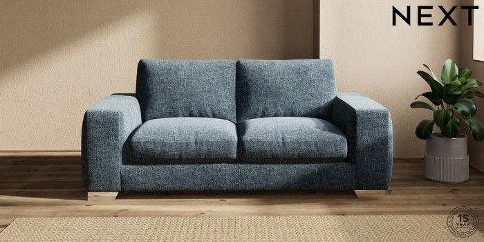 7.2.10 Houghton Deep Relaxed Sit 3 Seater Small Sofa Chunky Chenille Dark Navy Blue Large Square Angle - Chrome Metal | Made Click here to use our website with more accessibility support, for example screen readers