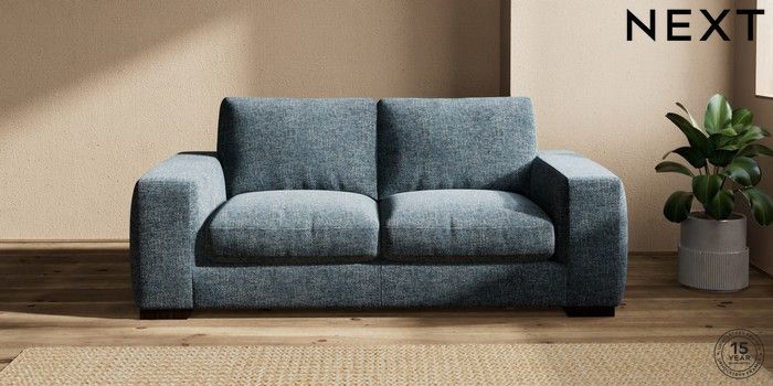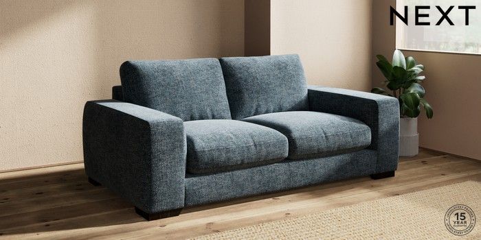 7.2.10 Houghton Deep Relaxed Sit 3 Seater Small Sofa Chunky Chenille Dark Navy Blue Large Square Angle - Dark | Made Click here to use our website with more accessibility support, for example screen readers