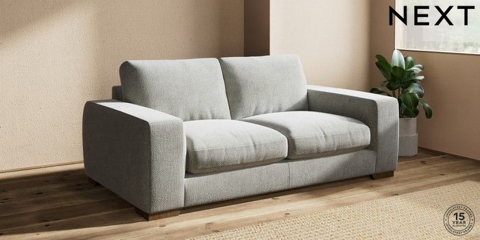 7.2.10 Houghton Deep Relaxed Sit 3 Seater Small Sofa Chunky Chenille Light Grey Large Square Angle - Mid | Made Click here to use our website with more accessibility support, for example screen readers