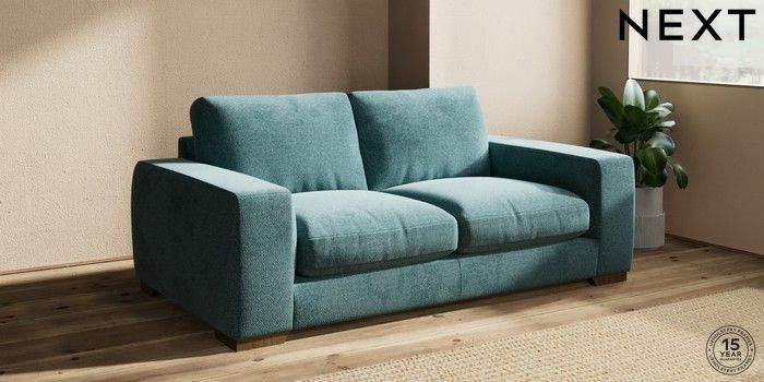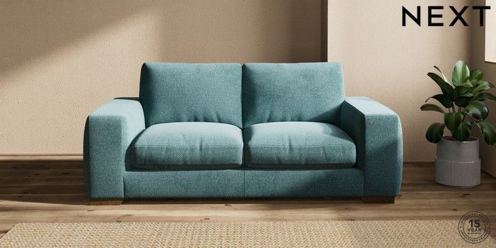 7.2.10 Houghton Deep Relaxed Sit 3 Seater Small Sofa Chunky Chenille Mid Teal Green Large Square Angle - Mid | Made Click here to use our website with more accessibility support, for example screen readers