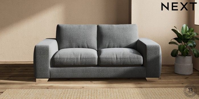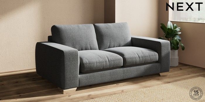 7.2.10 Houghton Deep Relaxed Sit 3 Seater Small Sofa Chunky Texture Dark Grey Large Square Angle - Chrome Metal | Made Click here to use our website with more accessibility support, for example screen readers