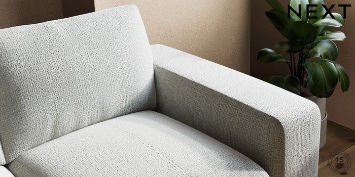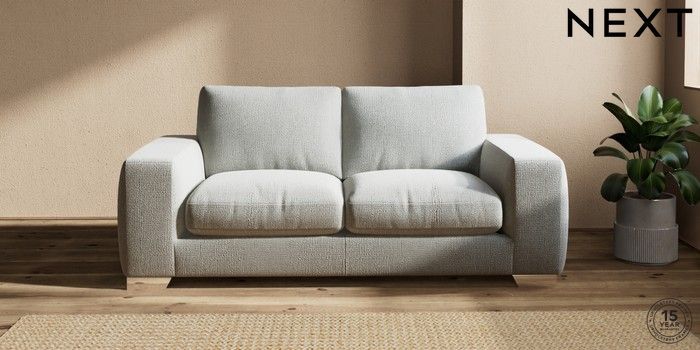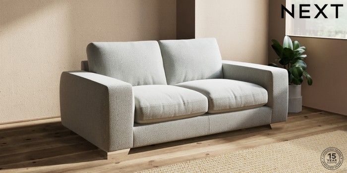 7.2.10 Houghton Deep Relaxed Sit 3 Seater Small Sofa Chunky Texture Dove Large Square Angle - Chrome Metal | Made Click here to use our website with more accessibility support, for example screen readers