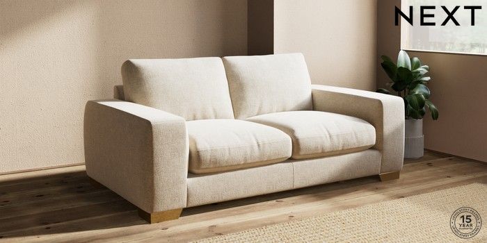 7.2.10 Houghton Deep Relaxed Sit 3 Seater Small Sofa Chunky Weave Cream Large Square Angle - Brushed Brass | Made Click here to use our website with more accessibility support, for example screen readers