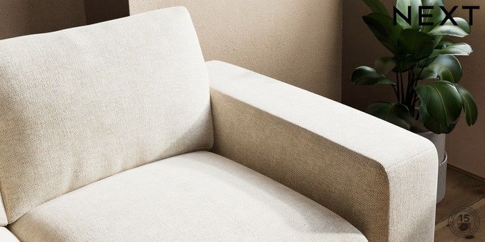 7.2.10 Houghton Deep Relaxed Sit 3 Seater Small Sofa Chunky Weave Cream Large Square Angle - Chrome Metal | Made Click here to use our website with more accessibility support, for example screen readers