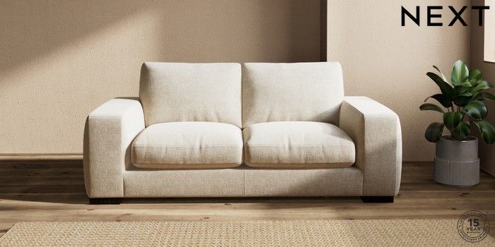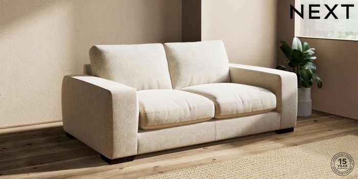 7.2.10 Houghton Deep Relaxed Sit 3 Seater Small Sofa Chunky Weave Cream Large Square Angle - Dark | Made Click here to use our website with more accessibility support, for example screen readers