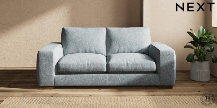 7.2.10 Houghton Deep Relaxed Sit 3 Seater Small Sofa Chunky Weave Mid Blue Large Square Angle - Mid | Made Click here to use our website with more accessibility support, for example screen readers