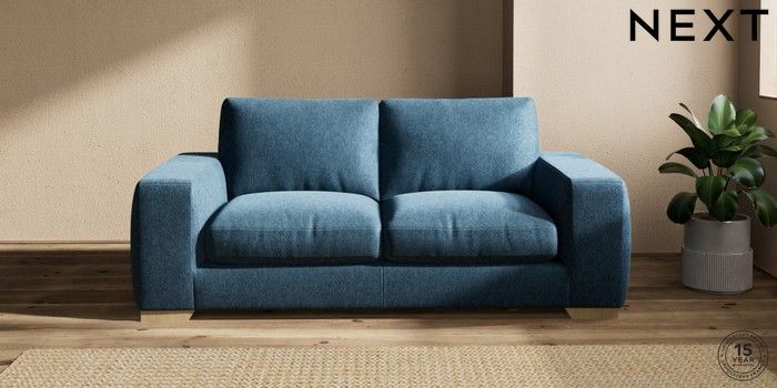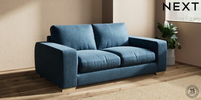 7.2.10 Houghton Deep Relaxed Sit 3 Seater Small Sofa Cotswold Chenille Dark Blue Large Square Angle - Light | Made Click here to use our website with more accessibility support, for example screen readers