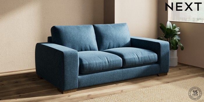 7.2.10 Houghton Deep Relaxed Sit 3 Seater Small Sofa Cotswold Chenille Dark Blue Large Square Angle - Mid | Made Click here to use our website with more accessibility support, for example screen readers