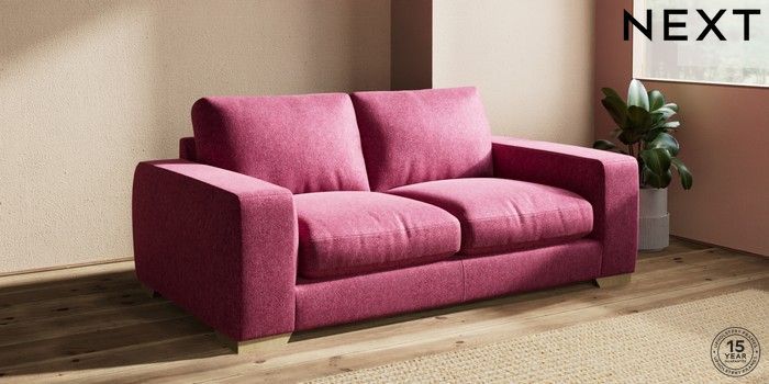 7.2.10 Houghton Deep Relaxed Sit 3 Seater Small Sofa Cotswold Chenille Dark Raspberry Pink Large Square Angle - Light | Made Click here to use our website with more accessibility support, for example screen readers
