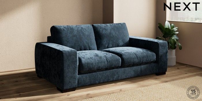 7.2.10 Houghton Deep Relaxed Sit 3 Seater Small Sofa Distressed Velour Midnight Blue Large Square Angle - Dark | Made Click here to use our website with more accessibility support, for example screen readers
