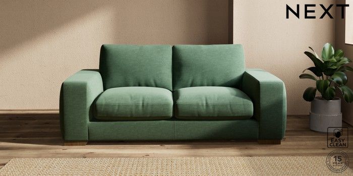 7.2.10 Houghton Deep Relaxed Sit 3 Seater Small Sofa Fine Chenille Easy Clean Mid Khaki Green Large Square Angle - Mid | Made Click here to use our website with more accessibility support, for example screen readers