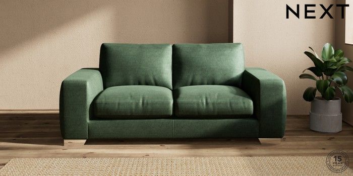 7.2.10 Houghton Deep Relaxed Sit 3 Seater Small Sofa Luxe Chenille Dark Green Large Square Angle - Chrome Metal | Made Click here to use our website with more accessibility support, for example screen readers