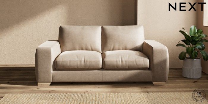 7.2.10 Houghton Deep Relaxed Sit 3 Seater Small Sofa Luxe Chenille Mid Camel Beige Large Square Angle - Chrome Metal | Made Click here to use our website with more accessibility support, for example screen readers