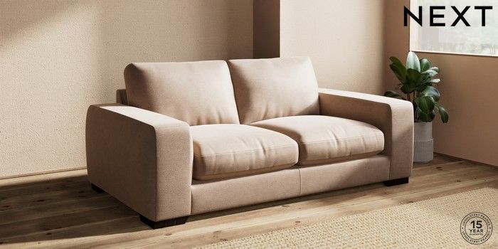 7.2.10 Houghton Deep Relaxed Sit 3 Seater Small Sofa Luxe Chenille Mid Natural Large Square Angle - Dark | Made Click here to use our website with more accessibility support, for example screen readers