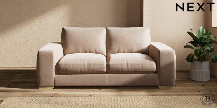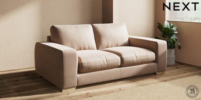 7.2.10 Houghton Deep Relaxed Sit 3 Seater Small Sofa Luxe Chenille Mid Natural Large Square Angle - Light | Made Click here to use our website with more accessibility support, for example screen readers