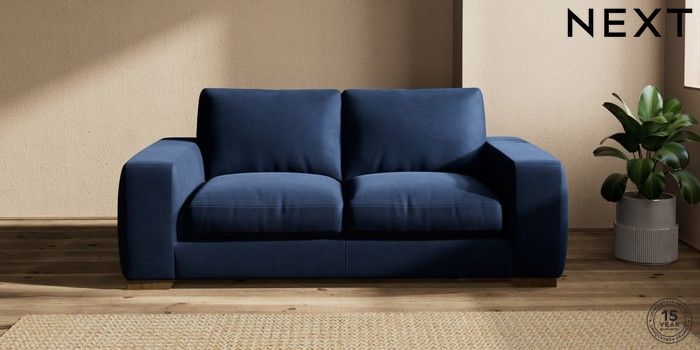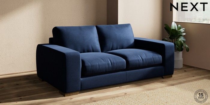 7.2.10 Houghton Deep Relaxed Sit 3 Seater Small Sofa Luxe Chenille Navy Blue Large Square Angle - Mid | Made Click here to use our website with more accessibility support, for example screen readers