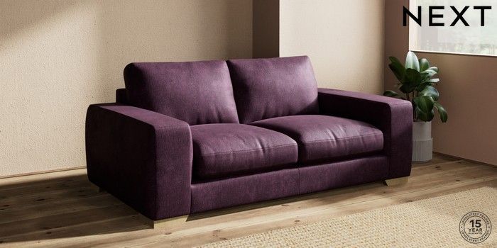 7.2.10 Houghton Deep Relaxed Sit 3 Seater Small Sofa Plush Chenille Dark Plum Purple Large Square Angle - Light | Made Click here to use our website with more accessibility support, for example screen readers