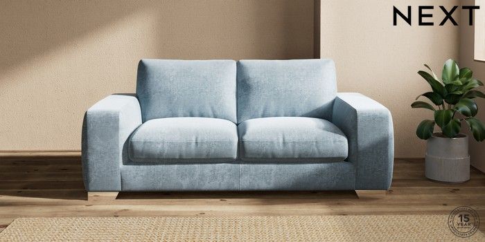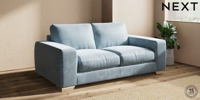 7.2.10 Houghton Deep Relaxed Sit 3 Seater Small Sofa Plush Chenille Light Blue Large Square Angle - Chrome Metal | Made Click here to use our website with more accessibility support, for example screen readers