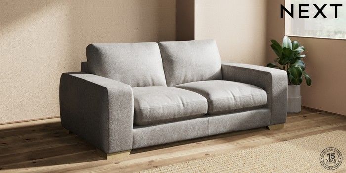 7.2.10 Houghton Deep Relaxed Sit 3 Seater Small Sofa Plush Chenille Light Grey Large Square Angle - Light | Made Click here to use our website with more accessibility support, for example screen readers