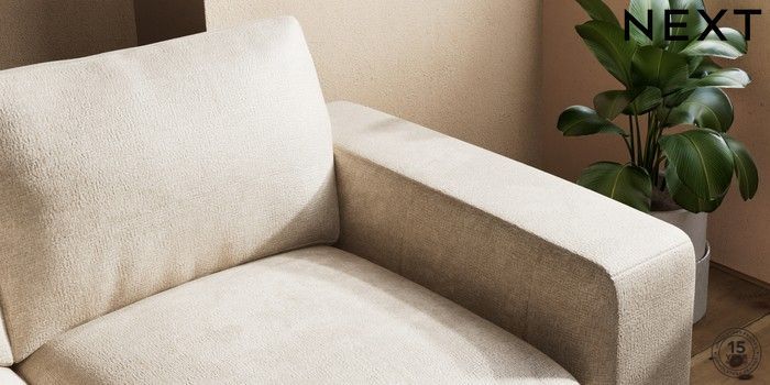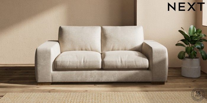 7.2.10 Houghton Deep Relaxed Sit 3 Seater Small Sofa Plush Chenille Light Natural Large Square Angle - Mid | Made Click here to use our website with more accessibility support, for example screen readers