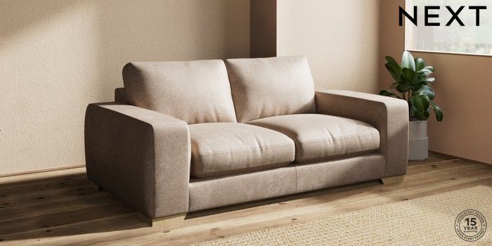 7.2.10 Houghton Deep Relaxed Sit 3 Seater Small Sofa Plush Chenille Mid Natural Large Square Angle - Light | Made Click here to use our website with more accessibility support, for example screen readers