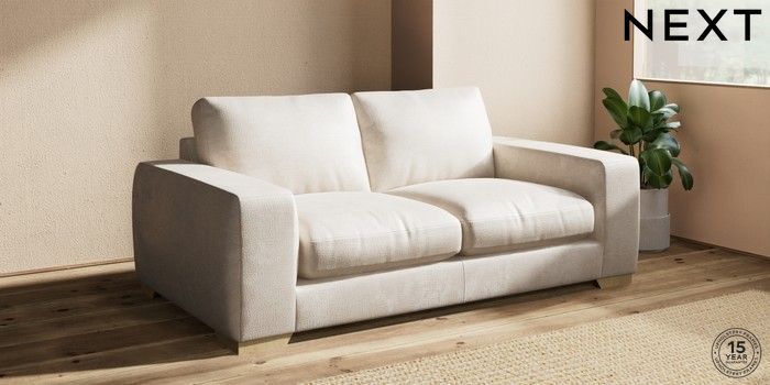 7.2.10 Houghton Deep Relaxed Sit 3 Seater Small Sofa Plush Chenille Oyster Large Square Angle - Light | Made Click here to use our website with more accessibility support, for example screen readers