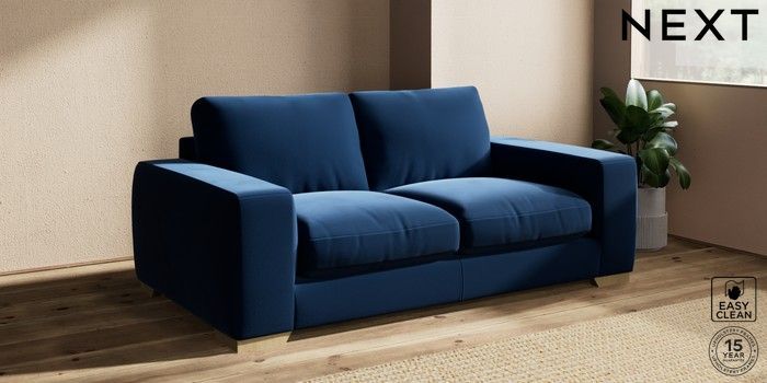 7.2.10 Houghton Deep Relaxed Sit 3 Seater Small Sofa Plush Velvet Easy Clean Navy Blue Large Square Angle - Light | Made Click here to use our website with more accessibility support, for example screen readers