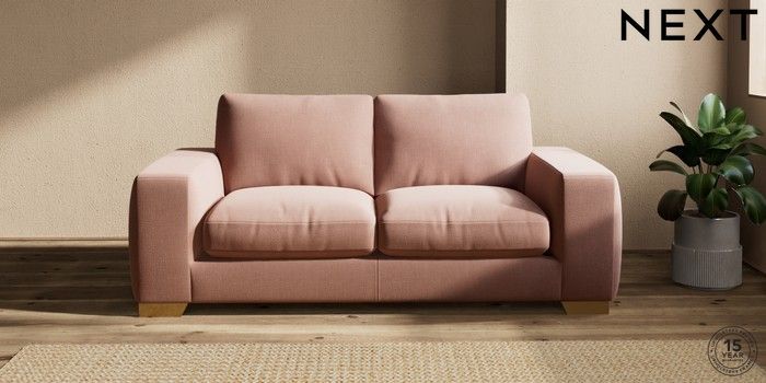 7.2.10 Houghton Deep Relaxed Sit 3 Seater Small Sofa Relaxed Linen Look Light Rust Brown Large Square Angle - Brushed Brass | Made Click here to use our website with more accessibility support, for example screen readers