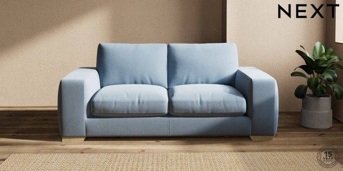 7.2.10 Houghton Deep Relaxed Sit 3 Seater Small Sofa Relaxed Linen Look Mid Blue Large Square Angle - Light | Made Click here to use our website with more accessibility support, for example screen readers