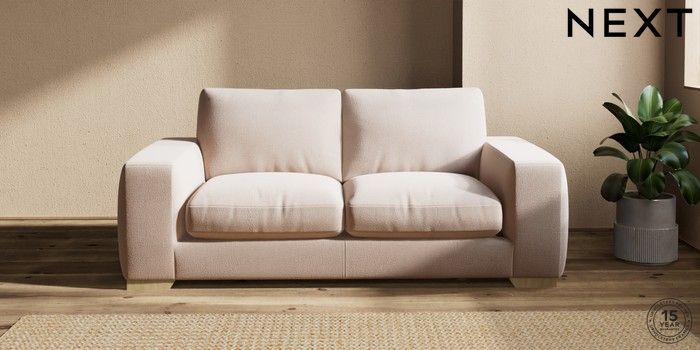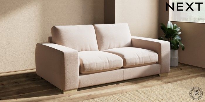 7.2.10 Houghton Deep Relaxed Sit 3 Seater Small Sofa Relaxed Linen Look Mid Natural Large Square Angle - Light | Made Click here to use our website with more accessibility support, for example screen readers