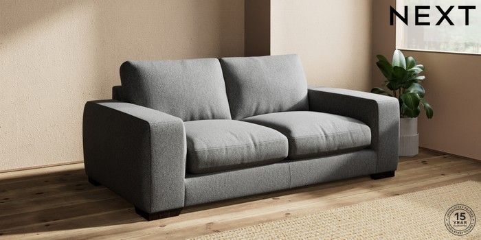 7.2.10 Houghton Deep Relaxed Sit 3 Seater Small Sofa Tweedy Chenille Dark Grey Large Square Angle - Dark | Made Click here to use our website with more accessibility support, for example screen readers