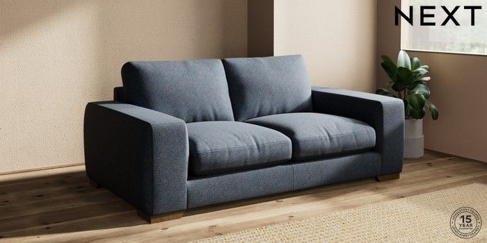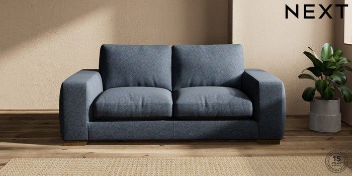 7.2.10 Houghton Deep Relaxed Sit 3 Seater Small Sofa Tweedy Chenille Navy Blue Large Square Angle - Mid | Made Click here to use our website with more accessibility support, for example screen readers