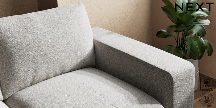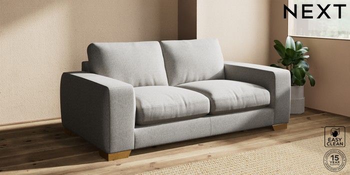 7.2.10 Houghton Deep Relaxed Sit 3 Seater Small Sofa Woven Chenille Easy Clean Light Grey Large Square Angle - Brushed Brass | Made Click here to use our website with more accessibility support, for example screen readers