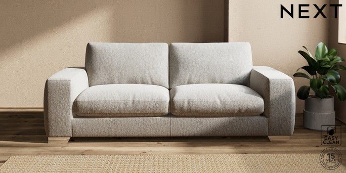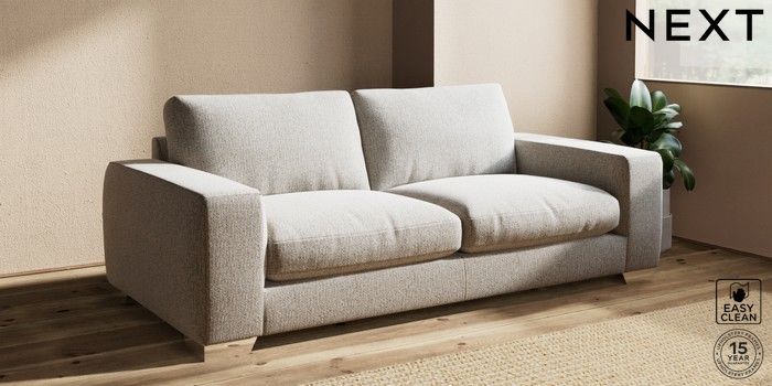 7.2.10 Houghton Deep Relaxed Sit 3 Seater Sofa Chunky Boucle Easy Clean Dove Large Square Angle - Chrome Metal | Made Click here to use our website with more accessibility support, for example screen readers