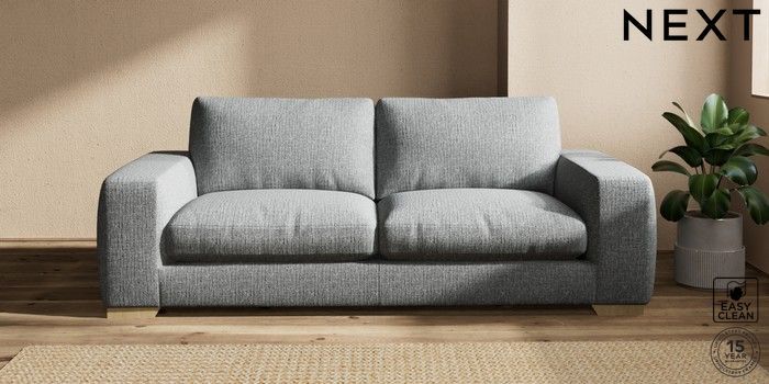 7.2.10 Houghton Deep Relaxed Sit 3 Seater Sofa Chunky Boucle Easy Clean Mid Grey Large Square Angle - Light | Made Click here to use our website with more accessibility support, for example screen readers