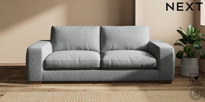 7.2.10 Houghton Deep Relaxed Sit 3 Seater Sofa Chunky Boucle Easy Clean Mid Grey Large Square Angle - Mid | Made Click here to use our website with more accessibility support, for example screen readers