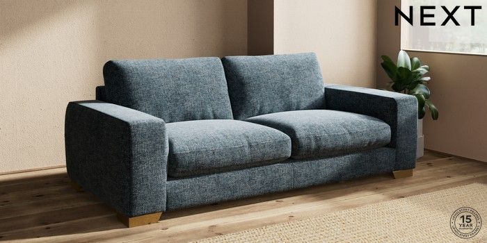 7.2.10 Houghton Deep Relaxed Sit 3 Seater Sofa Chunky Chenille Dark Navy Blue Large Square Angle - Brushed Brass | Made Click here to use our website with more accessibility support, for example screen readers