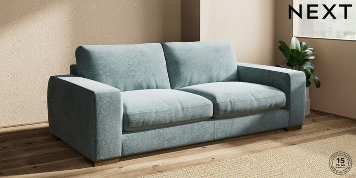 7.2.10 Houghton Deep Relaxed Sit 3 Seater Sofa Chunky Chenille Light Teal Green Large Square Angle - Mid | Made Click here to use our website with more accessibility support, for example screen readers