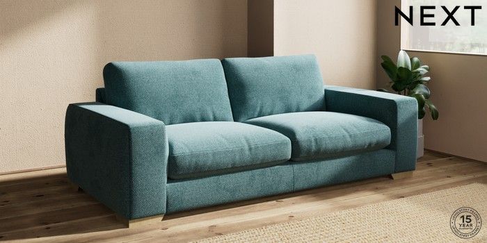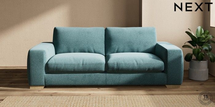 7.2.10 Houghton Deep Relaxed Sit 3 Seater Sofa Chunky Chenille Mid Teal Green Large Square Angle - Light | Made Click here to use our website with more accessibility support, for example screen readers