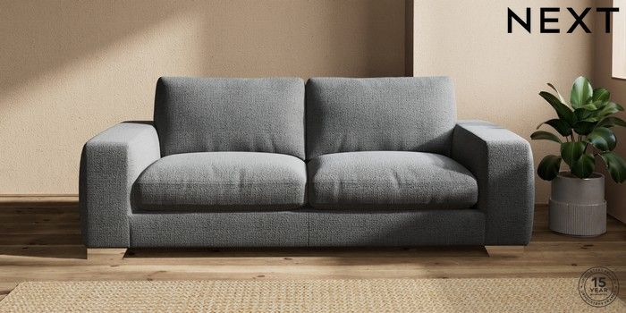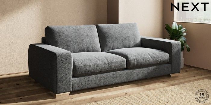 7.2.10 Houghton Deep Relaxed Sit 3 Seater Sofa Chunky Texture Dark Grey Large Square Angle - Chrome Metal | Made Click here to use our website with more accessibility support, for example screen readers