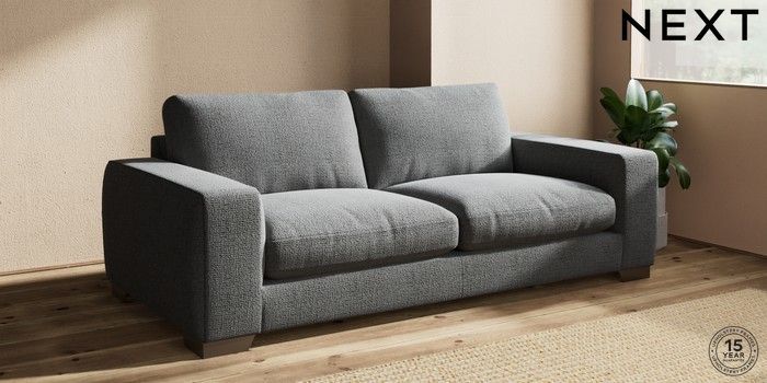 7.2.10 Houghton Deep Relaxed Sit 3 Seater Sofa Chunky Texture Dark Grey Large Square Angle - Gunmetal | Made Click here to use our website with more accessibility support, for example screen readers