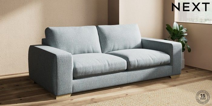 7.2.10 Houghton Deep Relaxed Sit 3 Seater Sofa Chunky Weave Mid Blue Large Square Angle - Light | Made Click here to use our website with more accessibility support, for example screen readers