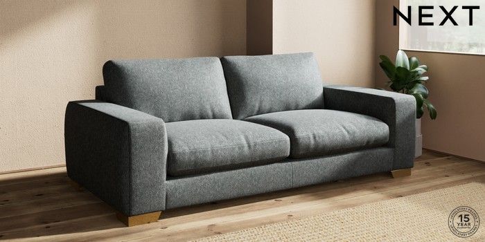 7.2.10 Houghton Deep Relaxed Sit 3 Seater Sofa Cotswold Chenille Dark Grey Large Square Angle - Brushed Brass | Made Click here to use our website with more accessibility support, for example screen readers