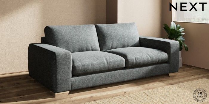 7.2.10 Houghton Deep Relaxed Sit 3 Seater Sofa Cotswold Chenille Dark Grey Large Square Angle - Chrome Metal | Made Click here to use our website with more accessibility support, for example screen readers