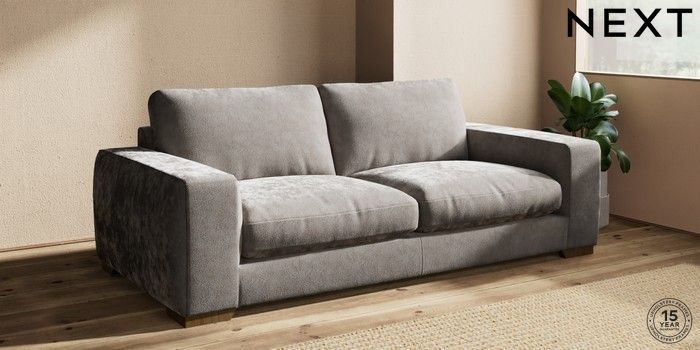 7.2.10 Houghton Deep Relaxed Sit 3 Seater Sofa Distressed Velour French Grey Large Square Angle - Mid | Made Click here to use our website with more accessibility support, for example screen readers