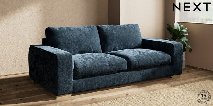 7.2.10 Houghton Deep Relaxed Sit 3 Seater Sofa Distressed Velour Midnight Blue Large Square Angle - Light | Made Click here to use our website with more accessibility support, for example screen readers