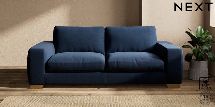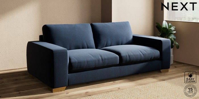 7.2.10 Houghton Deep Relaxed Sit 3 Seater Sofa Fine Chenille Easy Clean Dark Navy Blue Large Square Angle - Brushed Brass | Made Click here to use our website with more accessibility support, for example screen readers