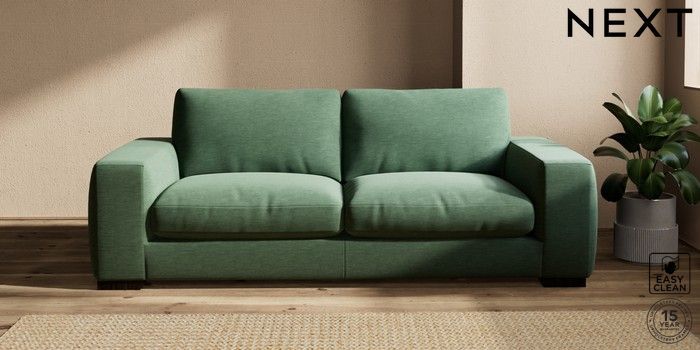 7.2.10 Houghton Deep Relaxed Sit 3 Seater Sofa Fine Chenille Easy Clean Mid Khaki Green Large Square Angle - Dark | Made Click here to use our website with more accessibility support, for example screen readers